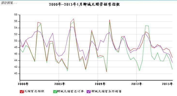 今日快訊:2015年聊城無(wú)縫管價(jià)格:周一管坯大幅下跌,臨沂無(wú)縫管廠跌幅最大,現(xiàn)聊城102以上低位3250臨沂小管3000出廠,成交仍可議,節(jié)前還有下降空間,無(wú)縫管銷(xiāo)售指數(shù)15年來(lái)降到最低,如下圖所示: