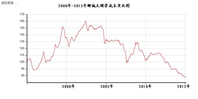 2000年-2015年原材料價(jià)格一直在降,2014年下半年至今原材料幾乎降到了歷史最低,聊城無(wú)縫管廠家的成本無(wú)疑也是在降低,圖下圖所示: